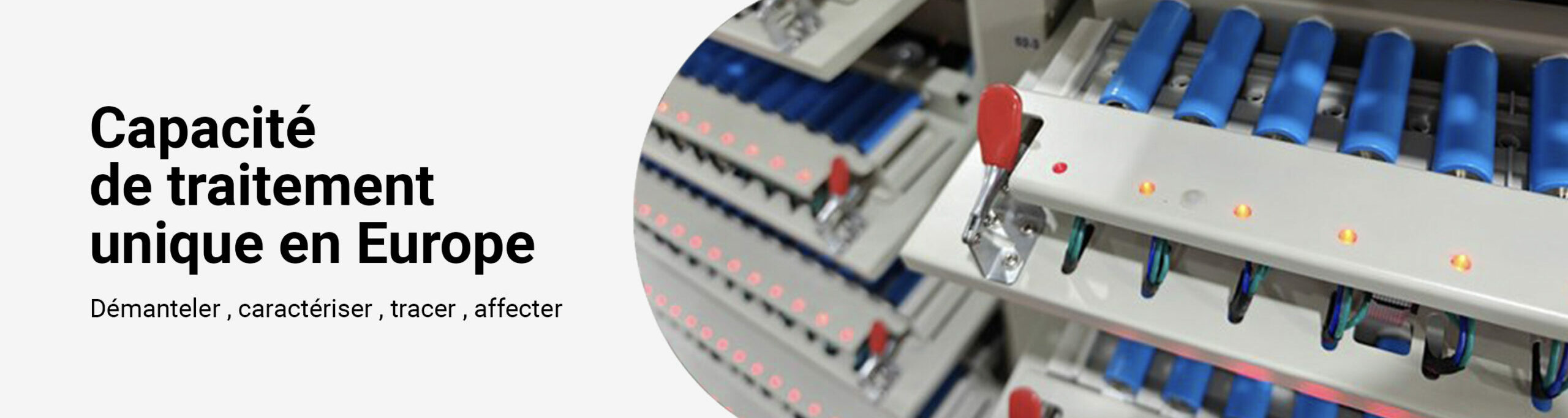 Au coeur de notre unité industrielle RE-LION®, chaque cellule lithium-ion est soumise à un processus de traitement rigoureux, symbolisant notre engagement envers la qualité et la performance. Notre approche méticuleuse garantit un diagnostic approfondi et une traçabilité amont / process / avale. Cette traçabilité sans faille renforce la confiance de nos partenaires et clients dans nos produits et nos pratiques durables